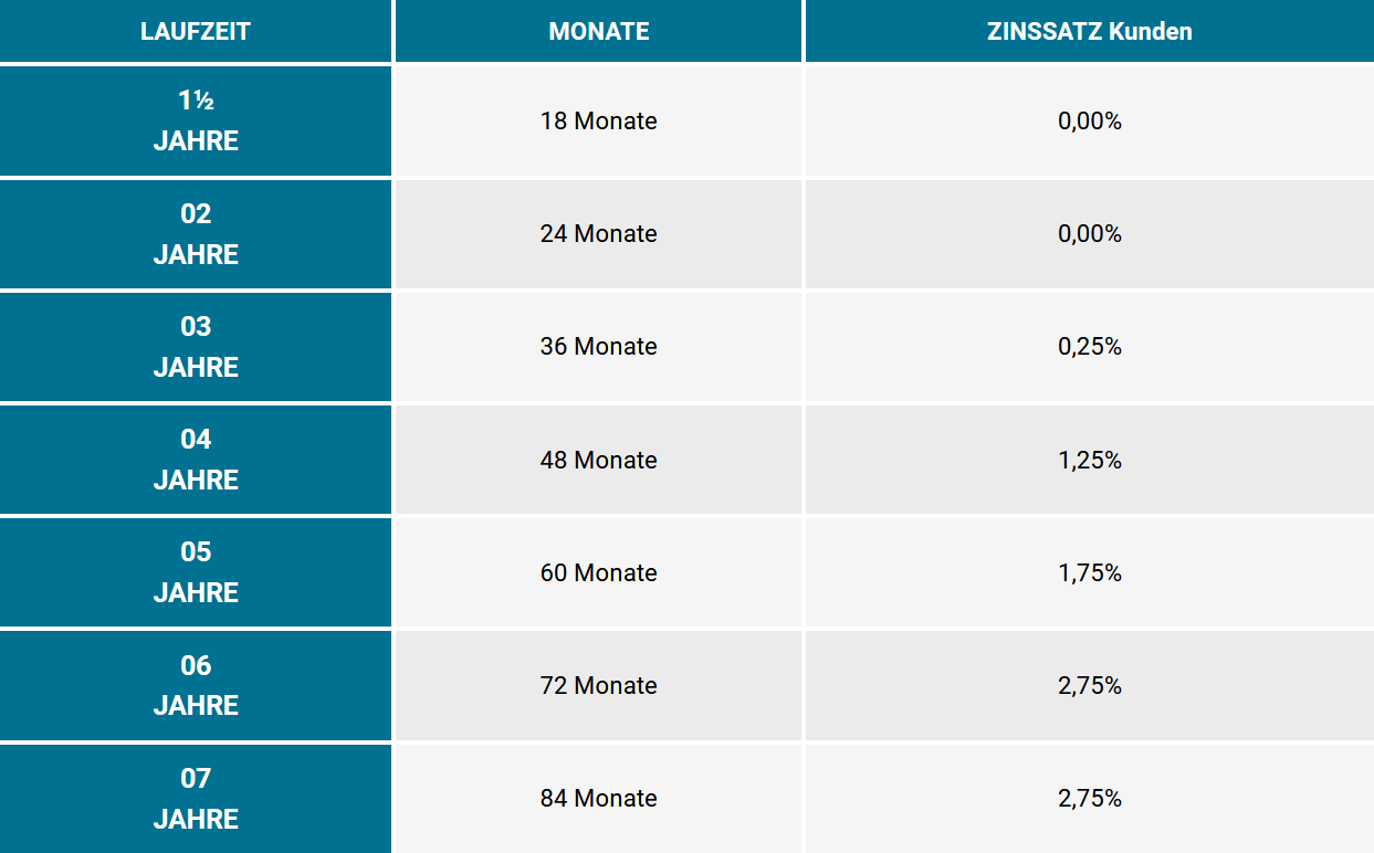 Weitere individuelle Finanzierungsangebote erhalten Sie auf Anfrage.